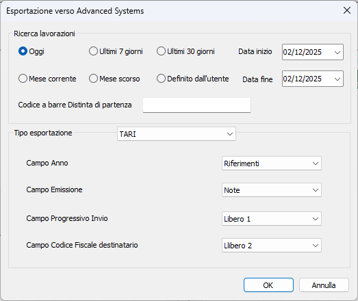 La funzione permette di esportare le lavorazioni presenti in PostOfficeManager secondo un formato file importabile nei sistemi Advanced Systems.