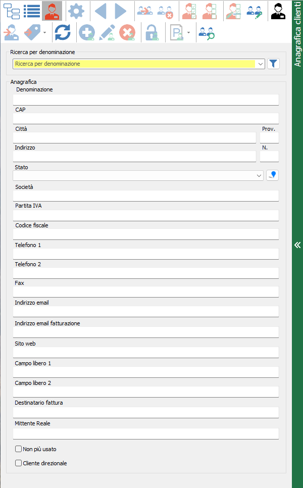 La finestra Anagrafica clienti permette di gestire ogni aspetto dell'anagrafica in un cliente.