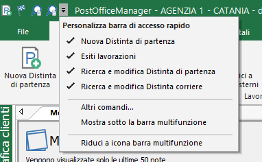 In alto a sinistra della finestra principale sono disponibili dei pulsanti per eseguire velocemente le operazioni più comuni. Questi pulsanti sono personalizzabili. Facendo click sulla freccetta verso il basso apparirà un menu dove è possibile visualizzare o nascondere i pulsanti predefiniti.