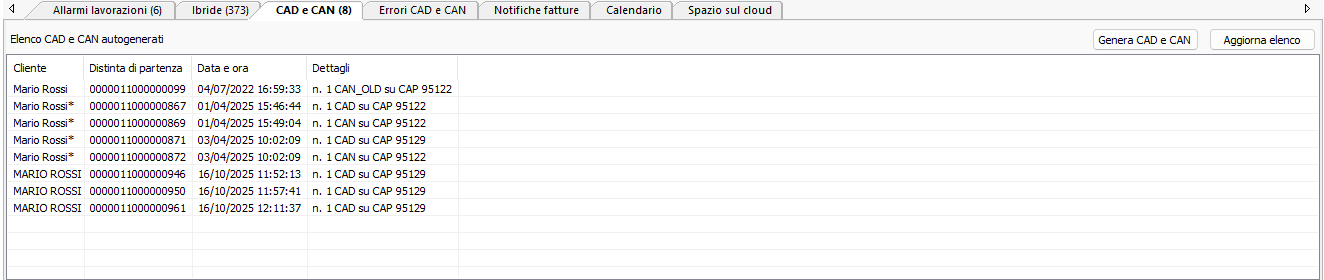 Premendo il pulsante Genera CAD e CAN รจ possibile formare la generazione automatica delle Distinte CAD e CAN.