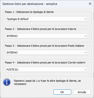 Al passo 4 selezionare li listino da usare per le lavorazioni che verranno consegnate attraverso qualunque altro corriere esterno.