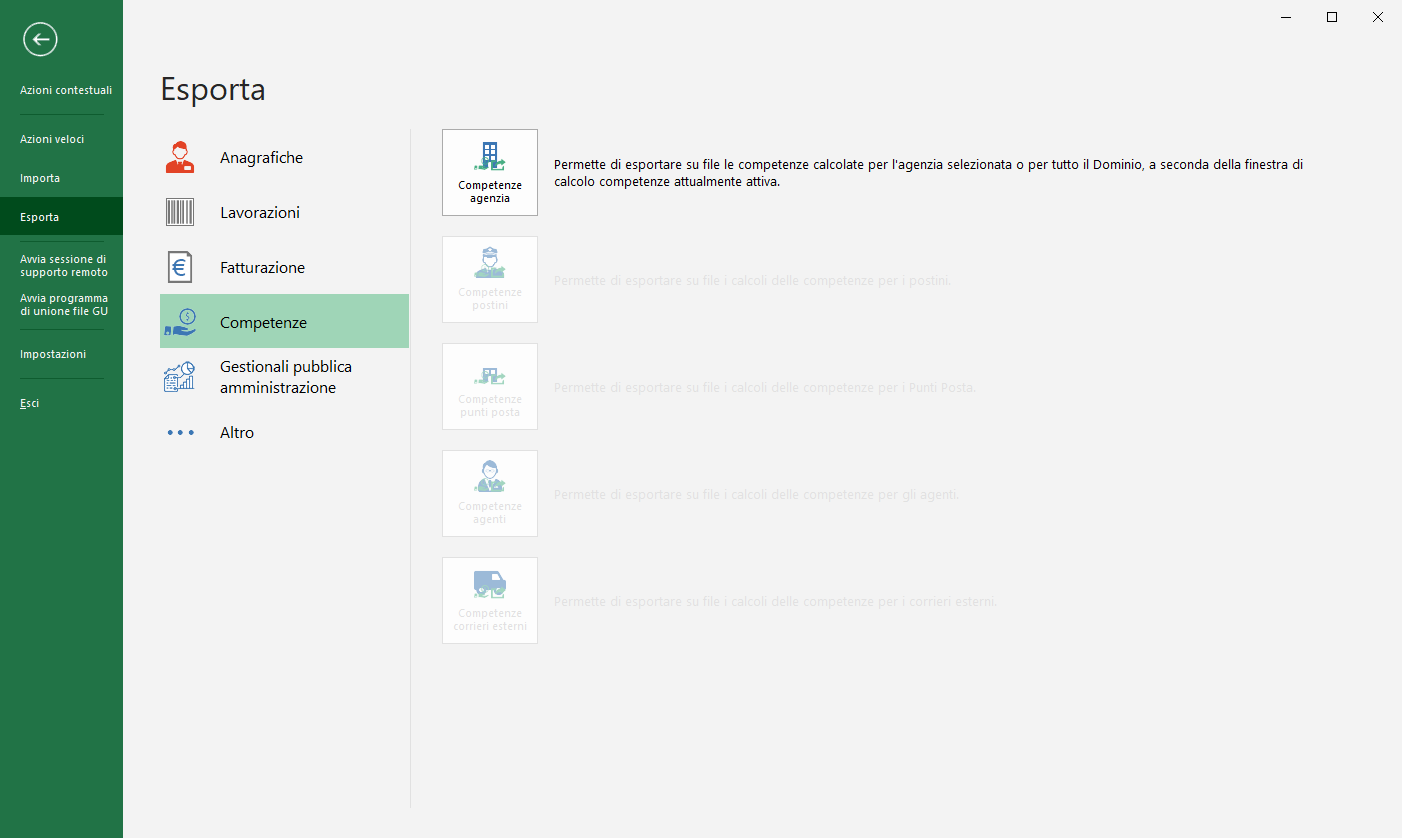 PostOfficeManager permette di salvare su file Excel o CSV il dettaglio della competenze calcolate.