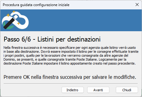 Premendo OK oppure Annulla apparirà quindi il sesto passaggio della procedura.