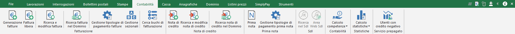 Barra multifunzione Contabilità In questa sezione sono racchiuse tutte le funzionalità che riguardano la contabilità dell'agenzia.