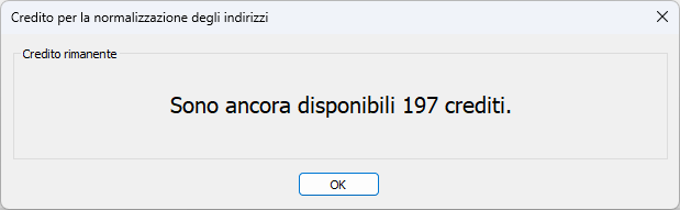 Apparirà una finestra come quella qui sotto riportata, dove sono riportati i crediti disponibili.
