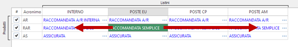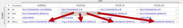 E’ possibile disabilitare un prodotto e tutte le sue varianti togliendo il segno di spunta accanto alla colonna dell'acronimo.