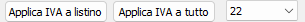 Applicando il codice IVA ad un solo listino verranno modificati i codici IVA di tutte le varianti prodotto del listino sia per il primo che per il secondo imponibile.