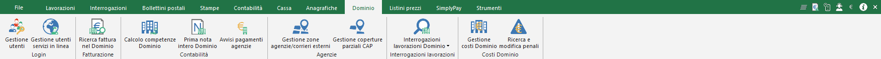 Barra multifunzione Dominio In questa sezione sono racchiuse funzionalità varie che riguardano tutto il Dominio.
