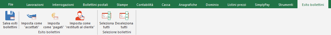 Imposta tutti i bollettini marcati nella griglia sottostante come Accettati, cioè ancora da pagare.