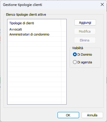 - Di Dominio: la tipologia selezionata è visibile per tutte le agenzie del Dominio.