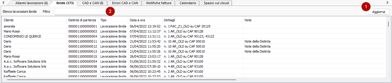 Nell'elenco principale della sezione sono riportate tutte le Distinte di partenza ibride che necessitano di essere lavorate (che si trovano nello stato sbloccato).