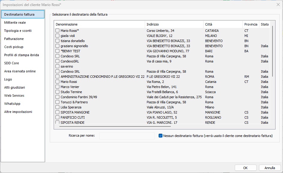 In questa finestra sono riunite tutte le funzionalità avanzate legate alle anagrafiche clienti.