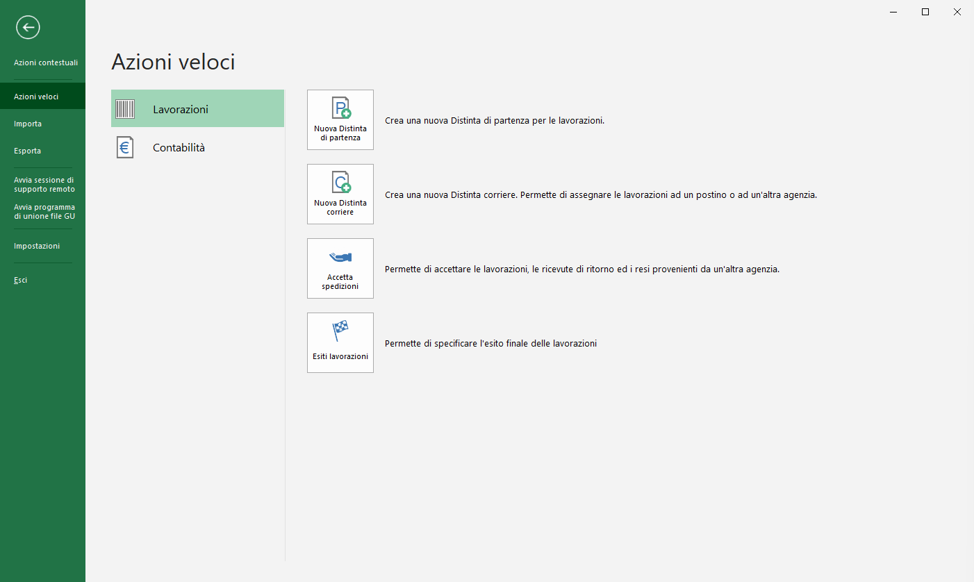 Barra multifunzioneFileAzioni veloci Lavorazioni In questa sezione sono racchiuse tutte le funzioni di uso comune che riguardano le lavorazioni.