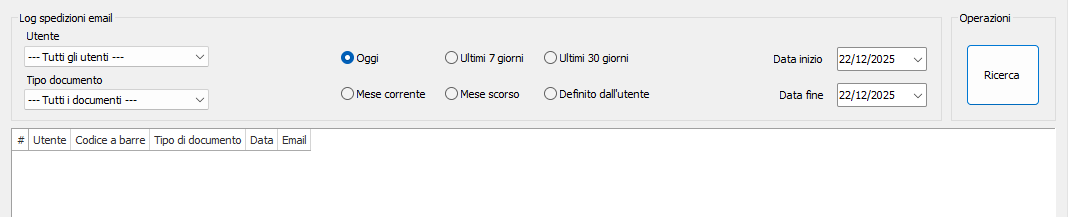 In questa griglia verranno visualizzati i dettagli delle email spedite. Nella colonna Codice a barre potrebbe essere disponibile un link. Facendo doppio click su questo link il sistema aprirà il relativo documento.