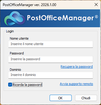 L'accesso a PostOfficeManager avviene attraverso un'autenticazione dell'utente.