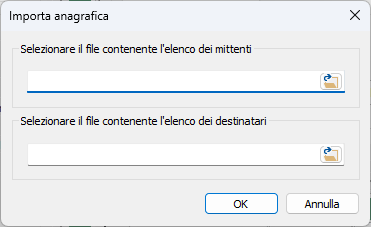 Selezionare il file mittenti e quello destinatari e premere OK per effettuare l'importazione.