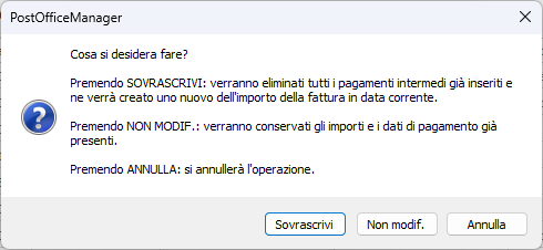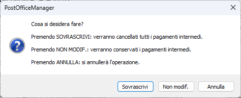 - Sovrascrivi: verranno eliminati tutti i pagamenti presenti.