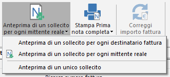 - Anteprima di un sollecito per ogni mittente reale: apre una finestra di Anteprima di stampa per ogni sollecito creato raggruppando le fatture per Mittente reale.
