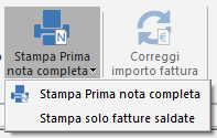 - Stampa Prima nota completa: permette di stampare un elenco di tutte le fatture cercate, sia pagate che non pagate.