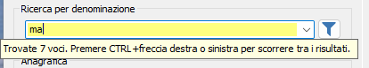 Se il testo inserito produce più di un risultato appare un tootip come quello raffigurato in figura qui sopra, indicante il numero di voci trovate. In modalità visualizzazione a campi è possibile scorrere tra le varie varie voci anche tenendo premuto il tasto CTRL e premendo il tasto sinistra o destra sulla tastiera.