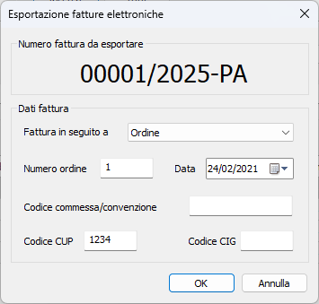Il pulsante permette di generare i file XML per la nota di credito elettronica per tutte le note di credito selezionate nella griglia. Se nella selezione sono presenti note di credito verso la pubblica amministrazione apparirà una finestra come quella qui sotto riportata.