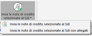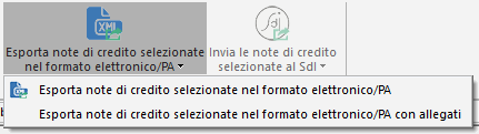 Il pulsante permette di inviare le note di credito selezionate al sistema di interscambio tramite Aruba. Il servizio è opzionale e va attivato a parte. Vedere il pulsante Esporta le note di credito selezionate nel formato elettronico/PA per le modalità operative.