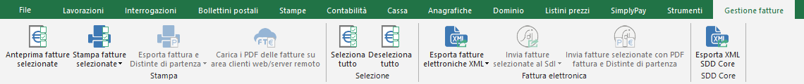 La barra contestuale ha le medesime funzionalità di quella della finestra Ricerca e modifica fattura. Fare riferimento a questo capitolo per maggiori dettagli.