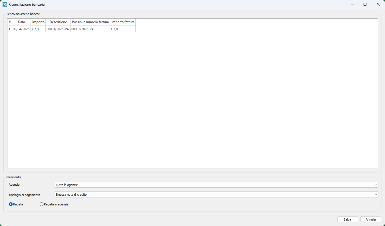 Dopo aver controllato che tutti i pagamenti siano stati correttamente agganciati premere il pulsante Salva.