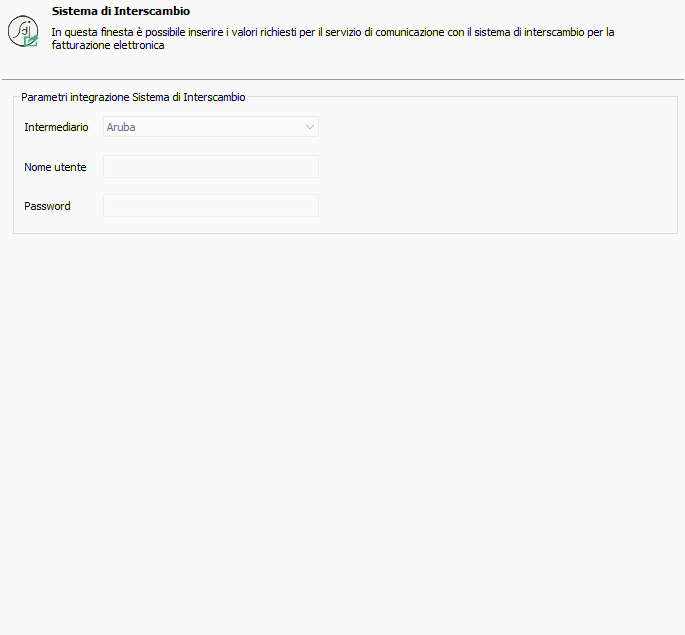 In questa finestra è possibile inserire i parametri per integrare sistemi terzi per la spedizione delle fatture elettroniche al Sistema di Interscambio.