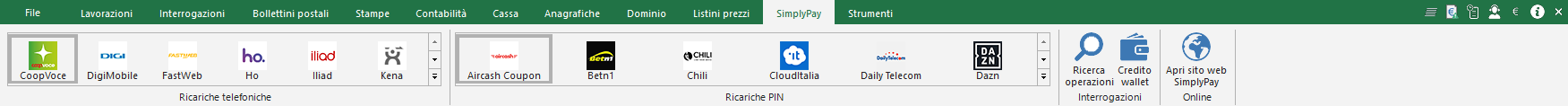 Barra multifunzione SimplyPay In questa sezione sono racchiuse tutte le funzionalità di pagamento del partner SimplyPay.