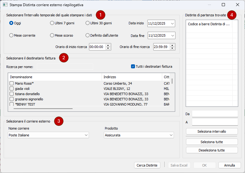 Stampa Distinta corriere esterno riepilogativa
