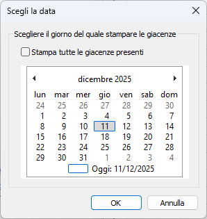 Selezionare il giorno per cui si desidera stampare il foglio giacenze.