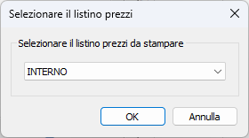 Selezionare dal menu a disceso il listino prezzi che si desidera stampare e premere OK. Apparirà una finestra di Anteprima di stampa con il documento richiesto.